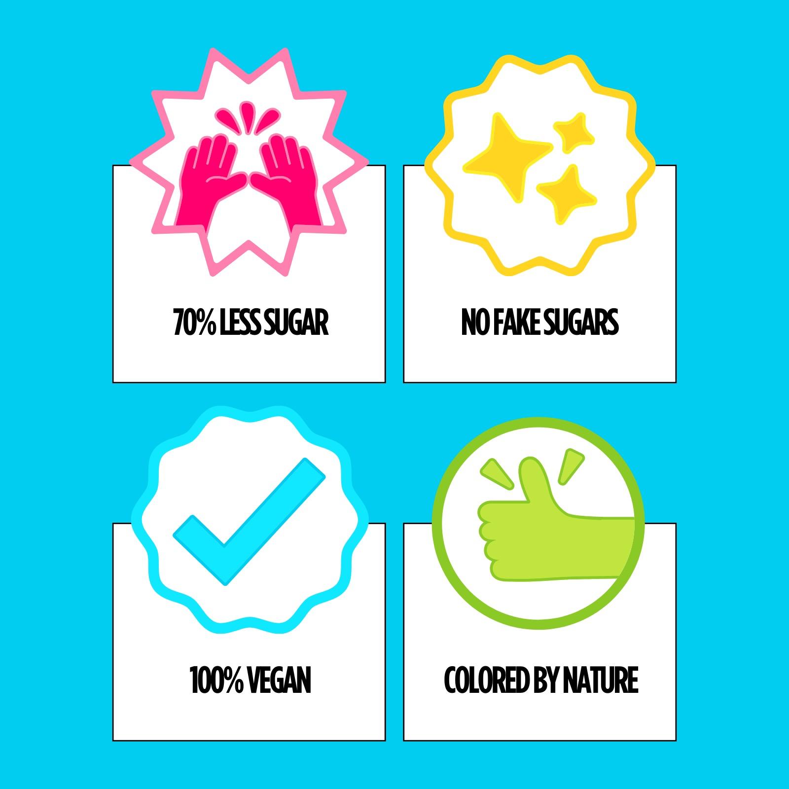 Yes, you heard that right. Our candy has 70% less sugar than your regular sweet treat!